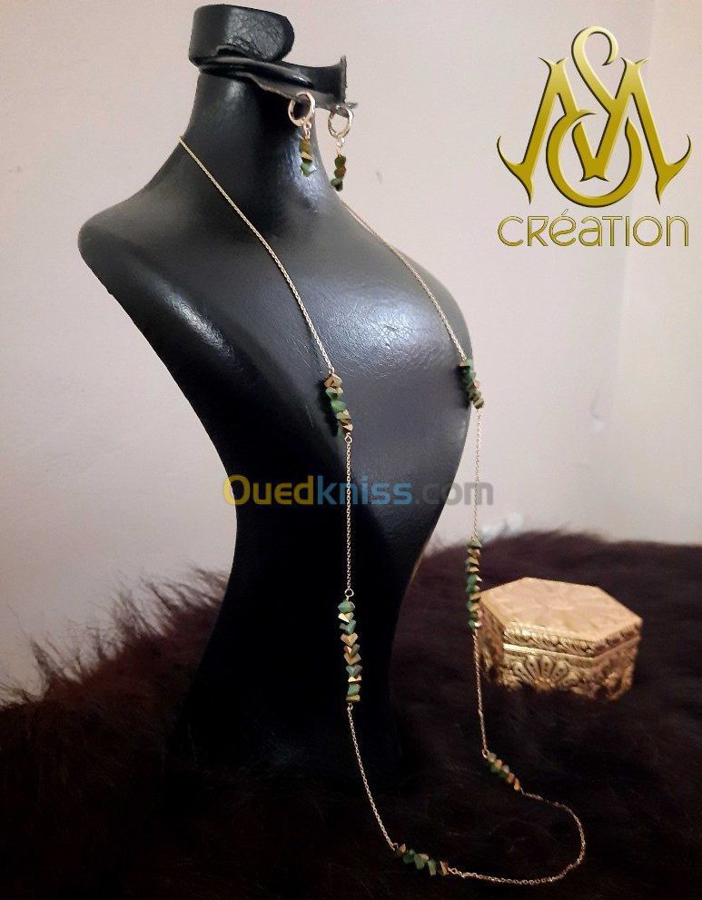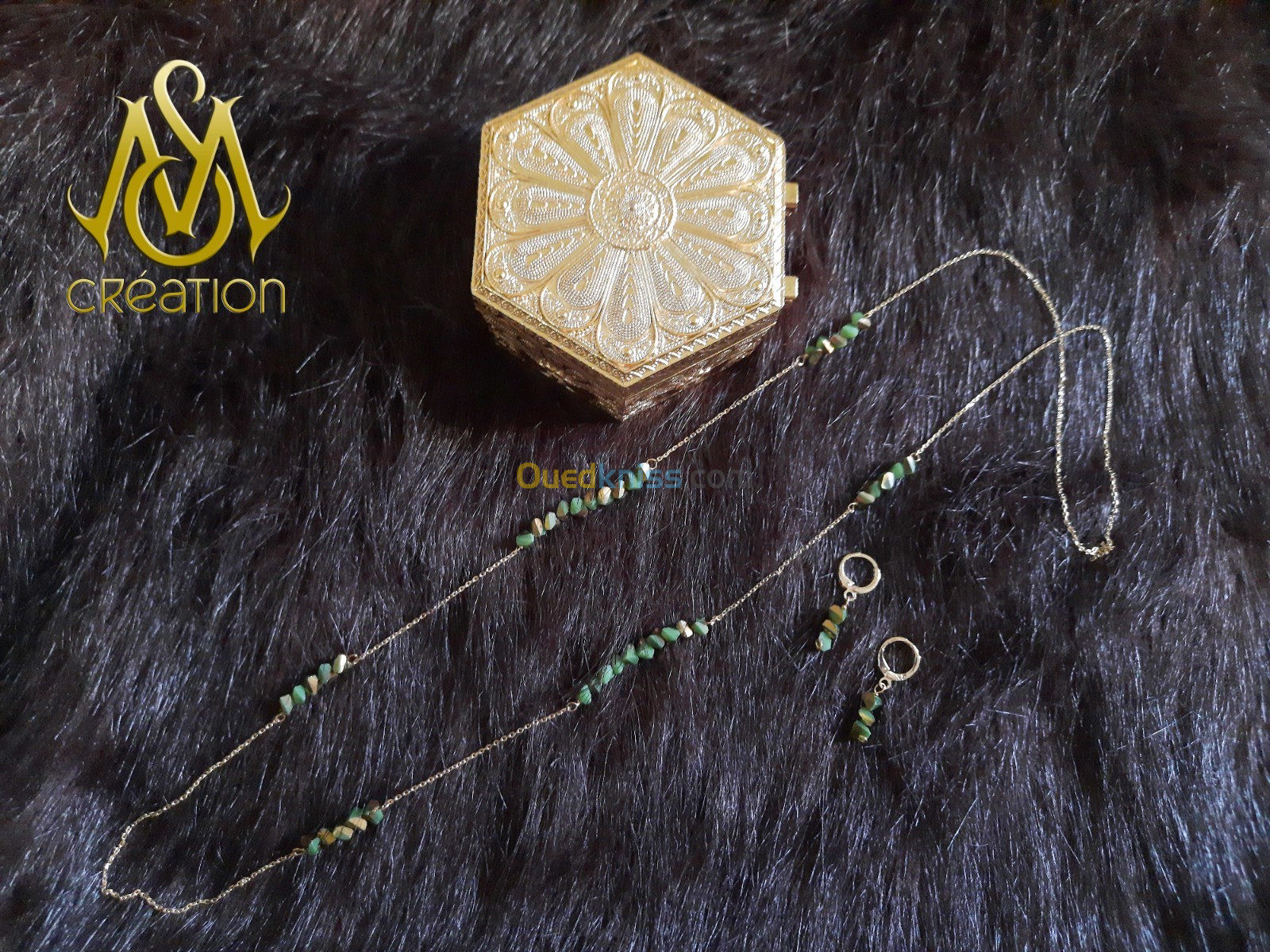 Un joli ras de cou en pierre d’eau douce (djoher) avec gourmette et boucles en plaquè-or garantie 10 ans. Pour toutes commandes ou informations la messagerie est à votre disposition