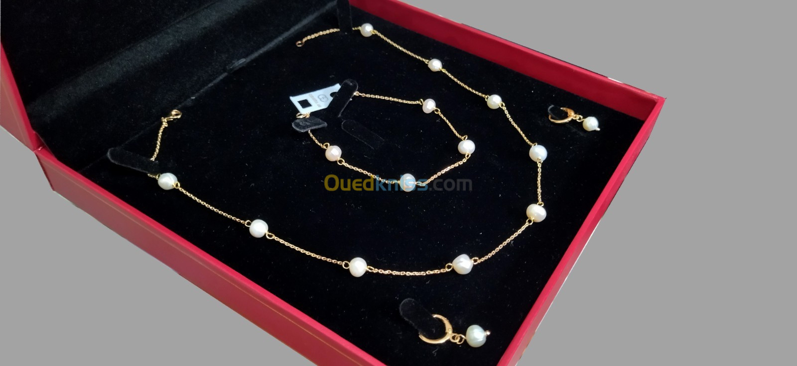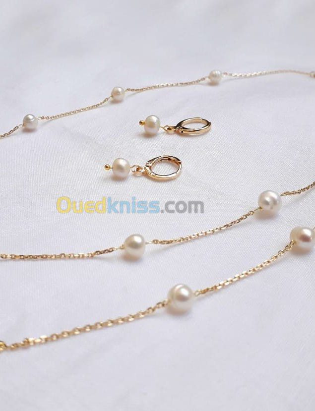 Un joli ras de cou en pierre d’eau douce (djoher) avec gourmette et boucles en plaquè-or garantie 10 ans. Pour toutes commandes ou informations la messagerie est à votre disposition